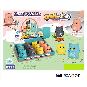 Mainan Press And Go Burung Hantu P/G Owl Family 1 Box 12 Pcs Loose Pack @432
