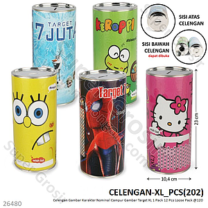 Celengan Target XL Ada Tutup Nominal Campur Gambar Karakter Target 1 Pack 12 Pcs Loose Pack @120