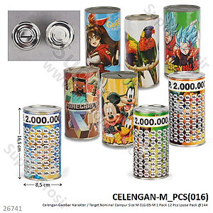Celengan M Tanpa Tutup Gambar Karakter Nominal Campur CLG-09-M 1 Pack 12 Pcs Loose Pack @144