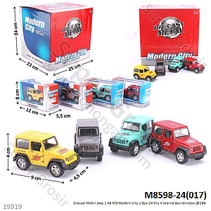 Diecast Mobil Jeep Wrangler 1:48 P/B Modern City 1 Box 24 Pcs 4 Warna Box Window @288