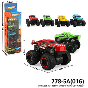 Diecast Monster Trucks Jeep Big Foot 4 Pcs F/W Hot Wheel Box Window @144
