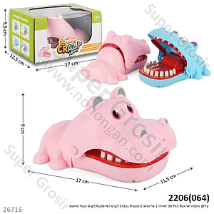 Game Toys Buaya Gigit Kuda Nil Gigit Crazy Hippo 2 Warna 1 Inner 36 Pcs Box Window @72