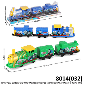 Kereta Thomas 3 Gerbong B/O Jalan Suara Musik Lampu Thonas Box Mika @96