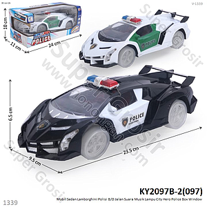 Mobil Sedan Lamborghini Polisi B/O Jalan Suara Musik Lampu City Hero Police Box Window