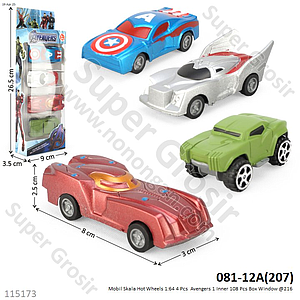 Mobil Skala Hot Wheels 1:64 4 Pcs P/B Avengers 1 Inner 108 Pcs Box Window @216