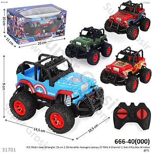 R/C Mobil Jeep Wrangler 15 cm 1:36 Karakter Avengers Lampu 27 MHz 4 Channel 1 Ikat 4 Pcs Box Window @72
