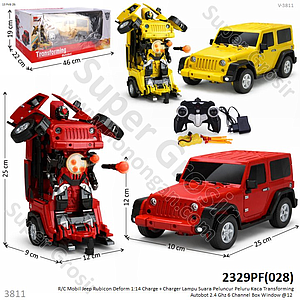 R/C Mobil Jeep Rubicon Deform 1:14 Charge + Charger Lampu Suara Peluncur Peluru Kaca Transforming Autobot 2.4 Ghz 6 Channel Box Window @12