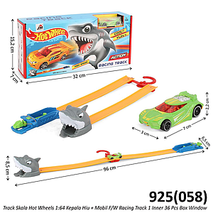 Track Mobil Skala Hot Wheels 1:64 Kepala Hiu + Mobil 1 Pcs F/W Racing Track 1 Inner 36 Pcs Box Window @72