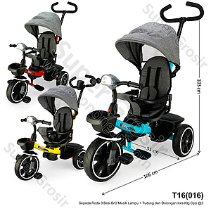 Tunggangan Sepeda Roda 3 Besi Tudung dan Dorongan B/O Musik Lampu Iora Ktg Opp @2
