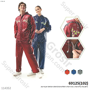 Jas Hujan Setelan Jaket Celana Matrix Rain City 1 Ikat 6 Pcs Tas @72
