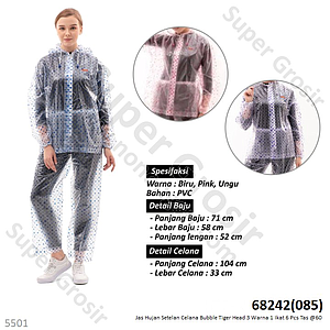 Jas Hujan Setelan Jaket Celana Bubble Tiger Head 1 Ikat 6 Pcs Tas @60
