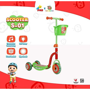 Scooter Roda 3 Merah B/O Lagu Cocomelon Lampu Iora Box @6